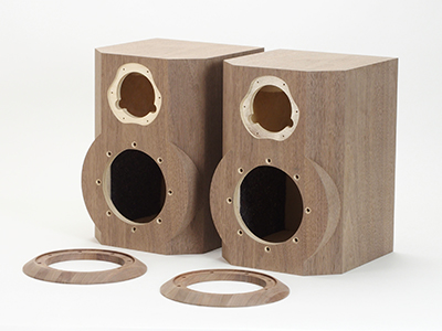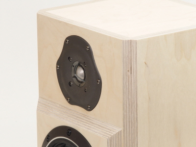 スピーカーエンクロージャー材は全てに18mm厚のホワイトバーチベニヤを採用いたしました。高音質合板の美しい響きをご堪能ください。完成品はホワイトバーチベニヤの上からウォールナットの突板・集成材等で化粧してウレタン塗装をいたしております。
